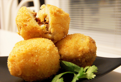 PAPA RELLENA: Papas rellenas de carne molida y papa; vienen en presentaciones por 12 unidades el paquete, su peso aproximado es de 145 g por unidad. Producto para distribuir en supermercados, cafeterías, restaurantes.